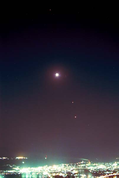 上から、土星、月(月齢3)、木星、金星