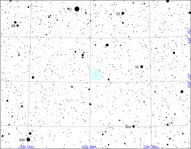 ■ 2011.09.04 00h37〜39m JST 恒星 :TYC 1768-00206-1 11.1等 赤経 02h 46m 12.852s,赤緯 +24°18' 21.58"(J2000) おひつじ座 小惑星:(200)Dynamene 12.5等 推定直径 132km 減光 :約 1.7等 継続時間 最長 17.0秒 掩蔽帯:四国,近畿 ランク:99ポイント ランク=減光の観測される可能性を示す指標。高ポイントほど確率が高い。 備考 :恒星が微光であることを除いて好条件 Star : TYC 1768-00206-1 (mag11.1) Asteroid : (200)Dynamene (mag12.5)視野5度平方 The SKY 6 により作成