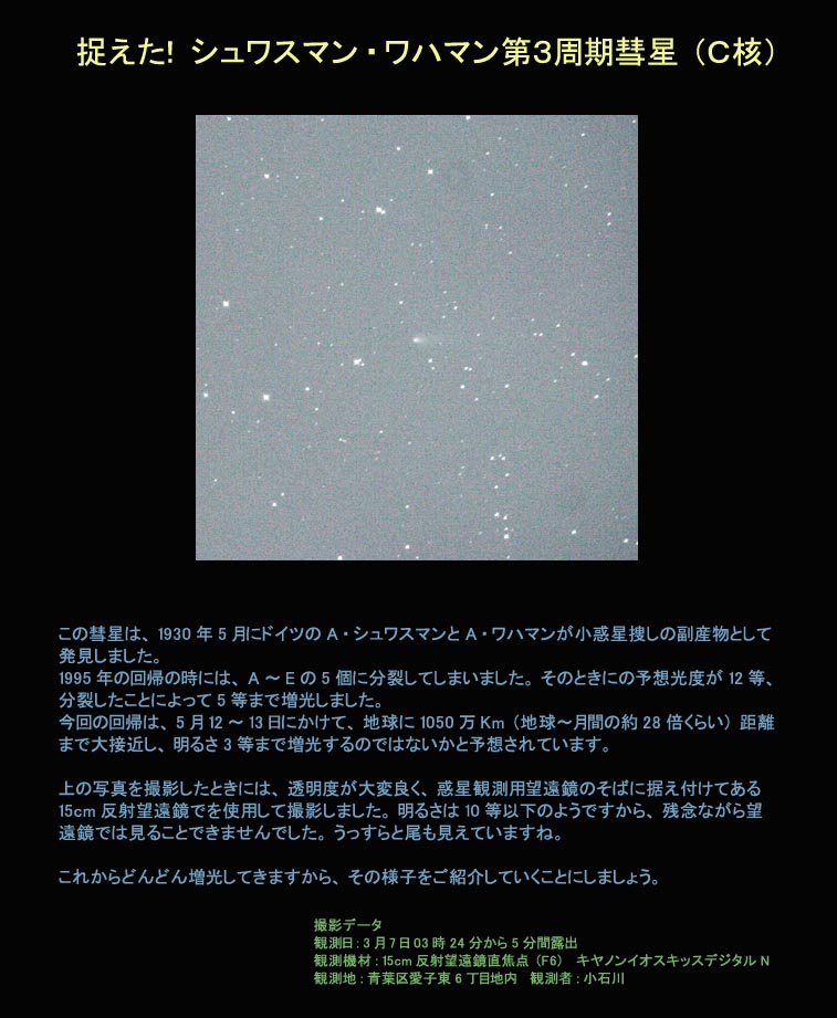 観測資料 シュワスマン・ワハマン彗星(すいせい)がやってくる