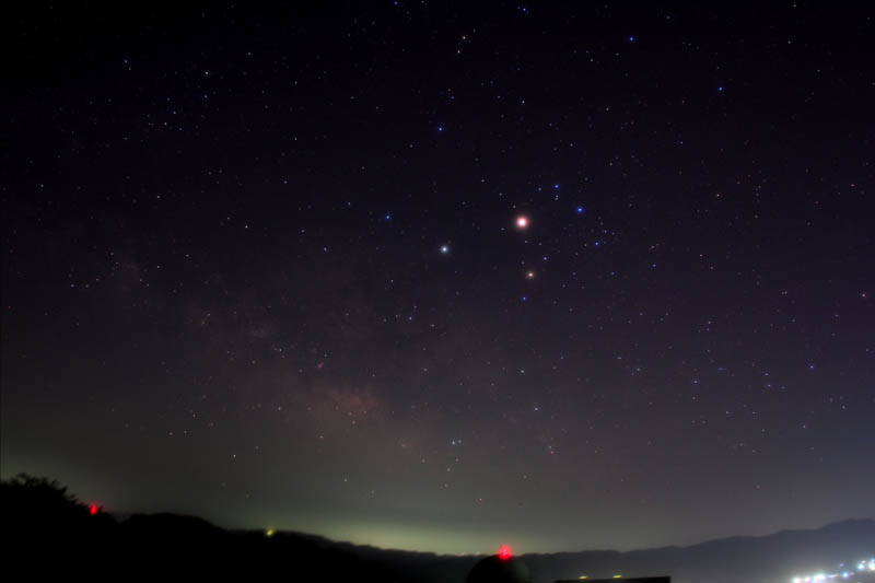 さそり座の頭部を挟んで右(西)に火星が、左に土星が明るく輝いています。天の川は肉眼でもよく見えていました。
