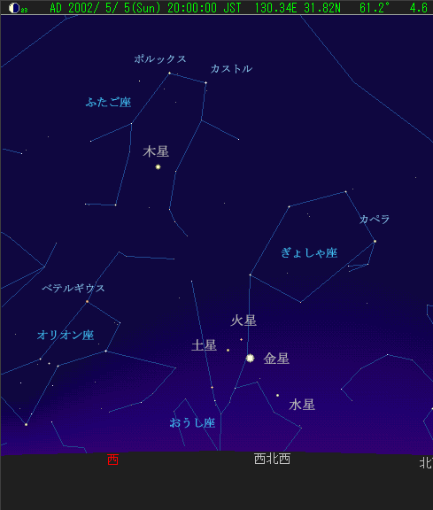 ■ 5月18日(少年天文教室)、夜8時頃の西空 ■