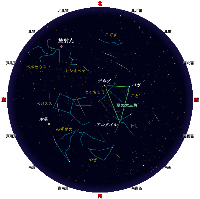 月は夜半前に昇ってきますが、おおむね好条件です。運がよければ、1時間当たり30個くらいの