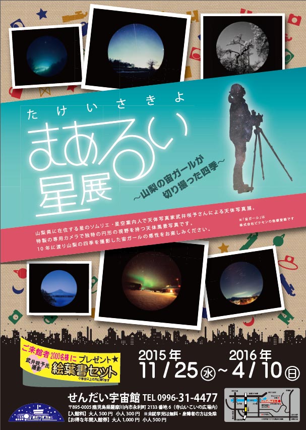 特製の専用カメラで独特の円形の写野を持つ天体風景写真です。10年に渡り山梨の四季を撮影した宙ガールの感性をお楽しみください。