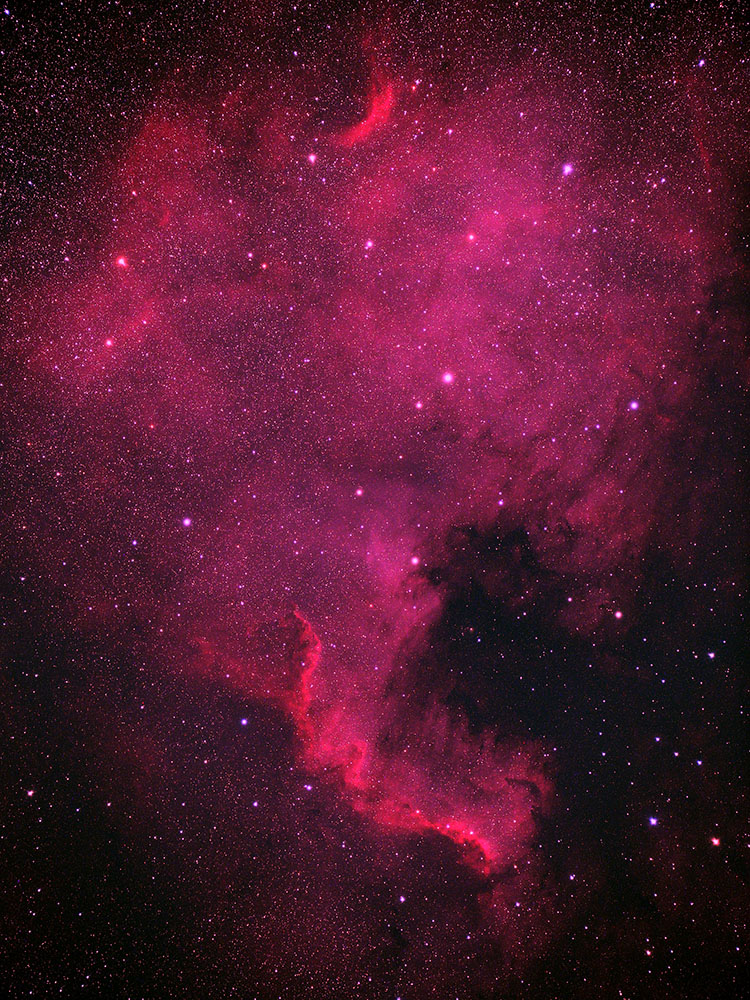 NGC7000散光星雲はその形が 北アメリカ大陸 に似ることから 北アメリカ星雲 の愛称があります。