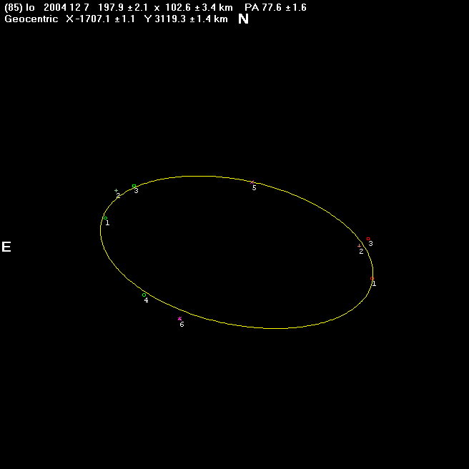 この小惑星(85)Io による恒星食は、1995年12月10日の恒星食でも北米で6地点の観測が得られています。さらに、今回の日本での観測の