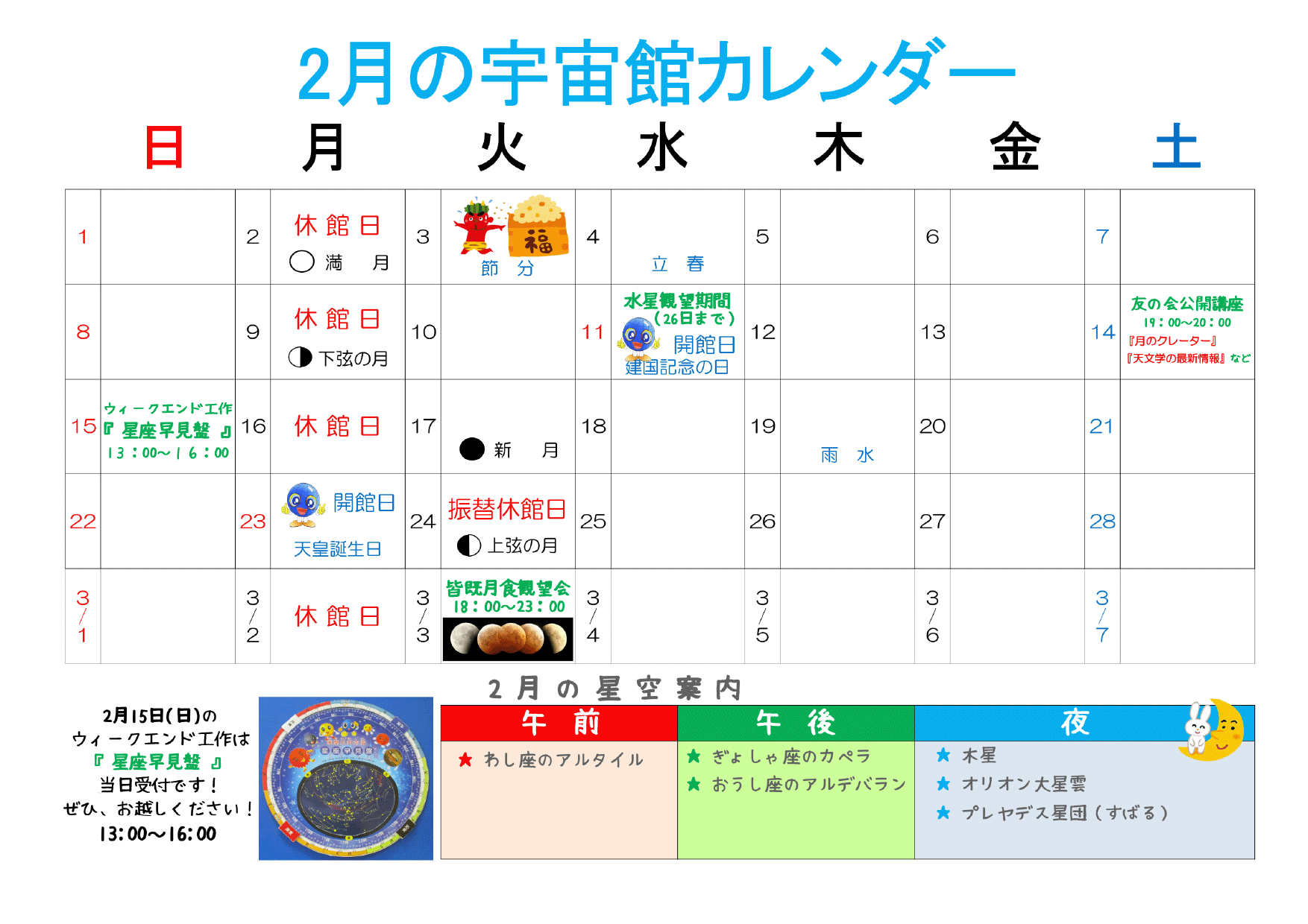 2月の宇宙館カレンダー